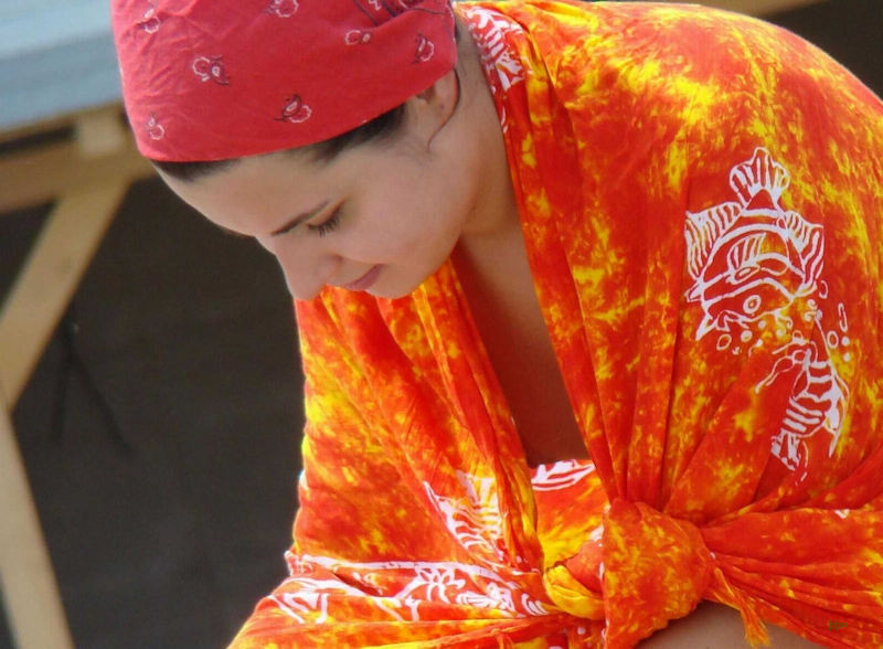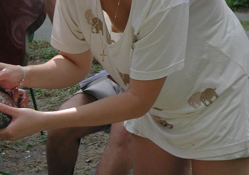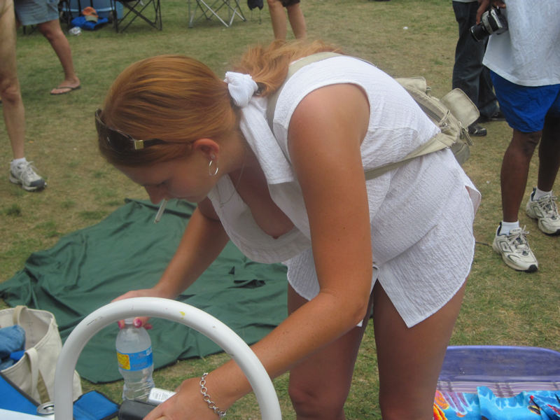 外国人が前屈みで乳首まで見えてる胸チラ画像