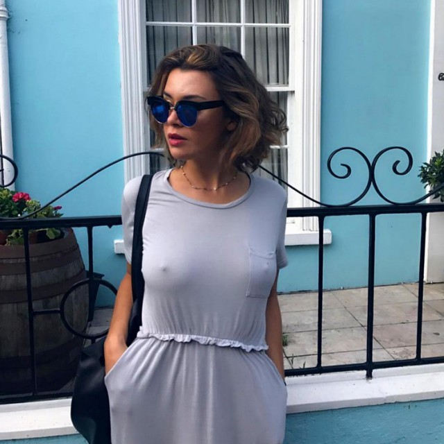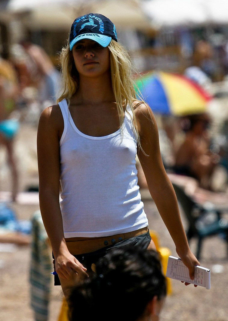 ノーブラな外国人美女の胸ポチエロ画像