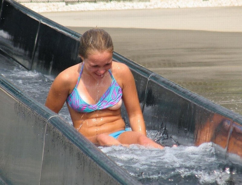 ウォータースライダーでおっぱいポロリしたりお尻が半ケツになってるエロ画像です。プールのウォータースライダーは水着がズレる恥ずかしいエロハプニングが満載ですね。 ウォータースライダーエロハプニング(ポロリ・半ケツ)集 全40枚。
